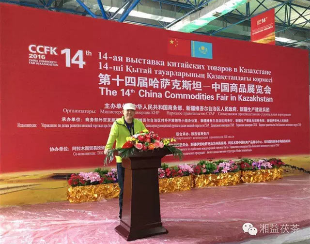 第十四屆哈薩克斯坦——中國商品展覽會于2016年5月20日在哈薩克斯坦阿拉木圖市隆重開幕。為積極落實中央關(guān)于加快推進(jìn)絲綢之路經(jīng)濟(jì)帶建設(shè),加大企業(yè)開拓中亞新興茶葉市場,提升湘益茯茶在中亞各國的品牌優(yōu)勢,新疆新益茶業(yè)有限責(zé)任公司做為兵團(tuán)代表之一向國外客商及消費者展示了湘益牌系列茯磚茶產(chǎn)品并受到一致好評。