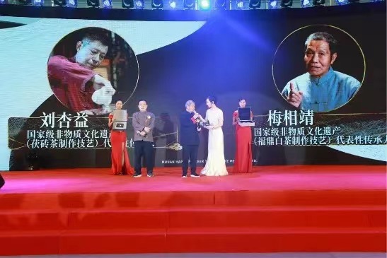 在茶香悠揚的茶藝表演之后,“中國好茶,黑白對話”高峰論壇特制紀(jì)念茶正式發(fā)布,成為與會嘉賓關(guān)注和熱議的話題。國家非物質(zhì)文化遺產(chǎn)茯茶制作技藝代表性傳承人劉杏益大師為大家講解了研發(fā)制作理念,其健康、高品質(zhì)的特點贏得大家的高度認(rèn)可。隨后,劉仲華院士與兩位大師共同在茶上簽名,將現(xiàn)場氣氛推至高潮。
